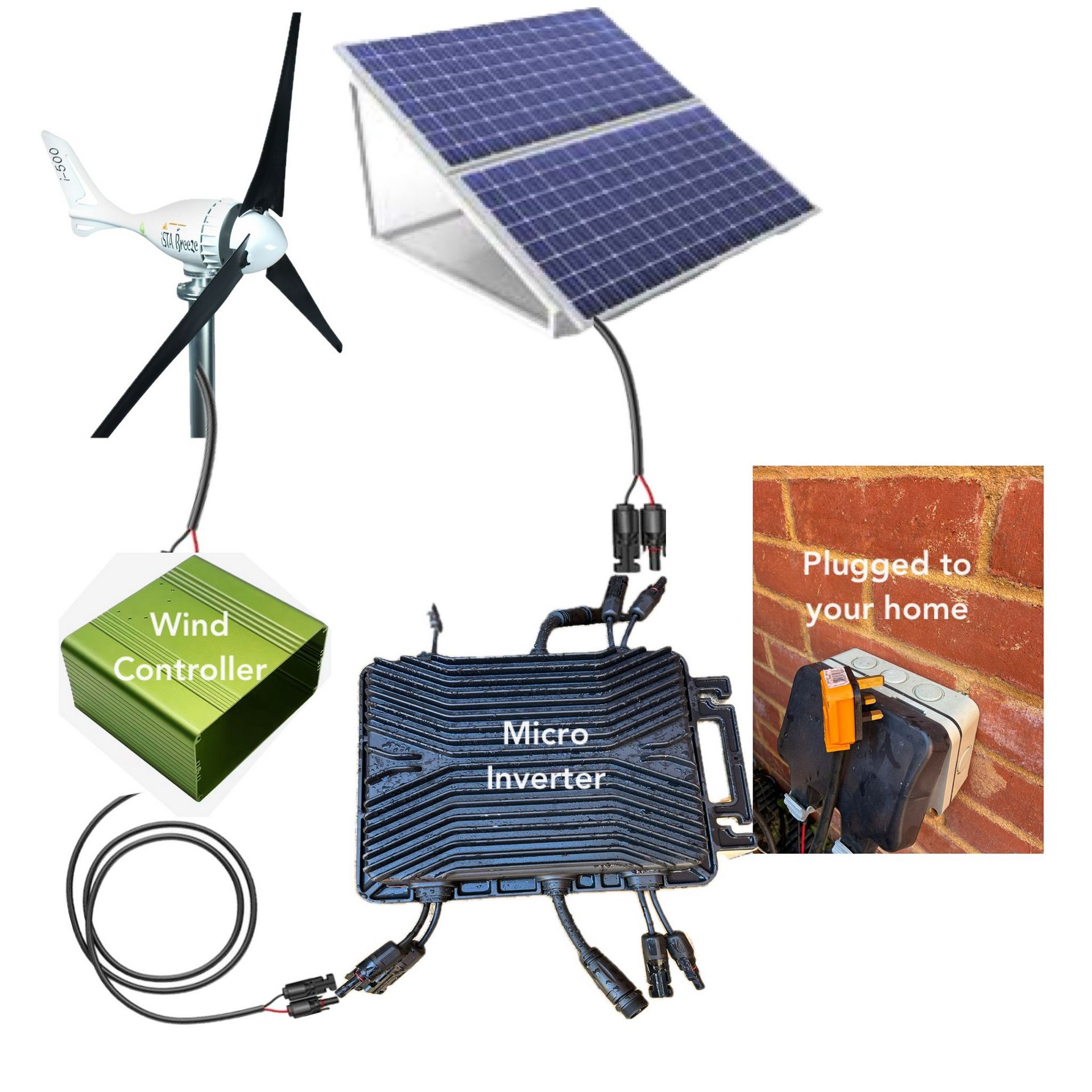 Our solution allows you to plug a wind turbine to any micro-inverter (the box your solar panels are connected to)